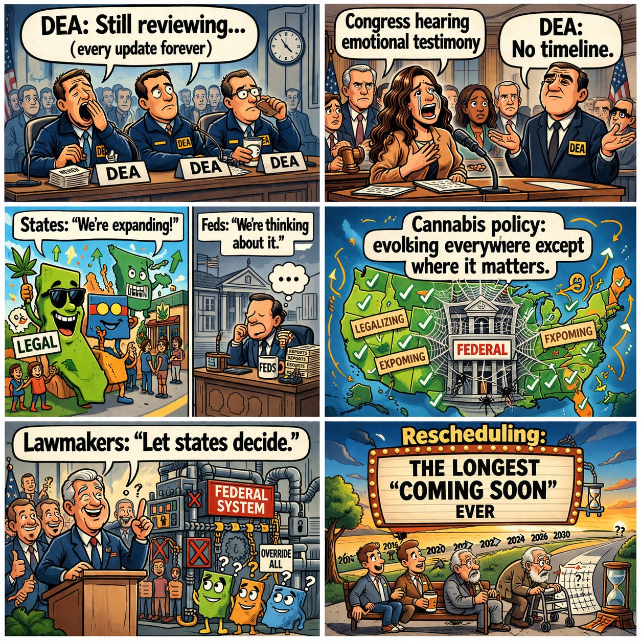 Despite federal directives, the DEA says marijuana rescheduling is still pending with no timeline.